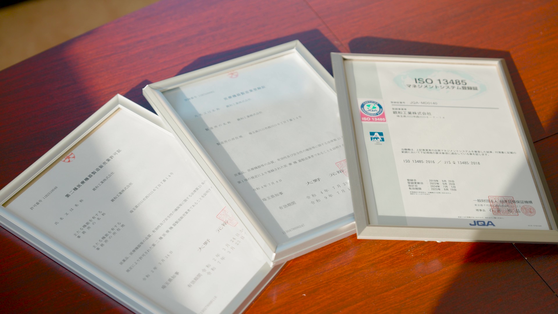 当サイトを運営する親和工業は、医療機器製造業・製造販売業許可、ISO13485、クラス10,000のクリーンルームを持つ、