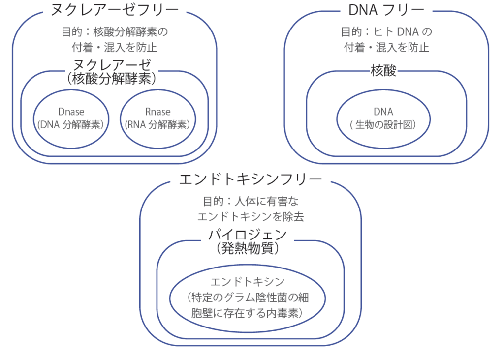 「DNA フリー」「エンドトキシンフリー」「ヌクレアーゼフリー」の違いとは?
