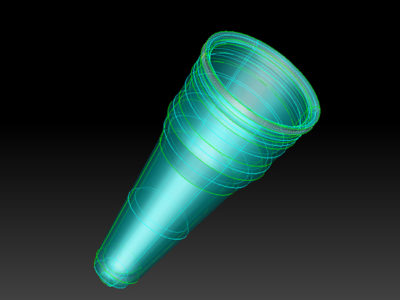 こちらのプラスチック射出成形品は、PP(ポリプロピレン)製の医療用シリンジです。このシリンジは中に入るピストンの関係で内側の抜きテーパーが0度となっています。この医療用薄肉シリンジは注射器などの医療用器具とは違い、使用する際に中身を過熱するため、製品の側面部分の肉厚が薄く出来ています。