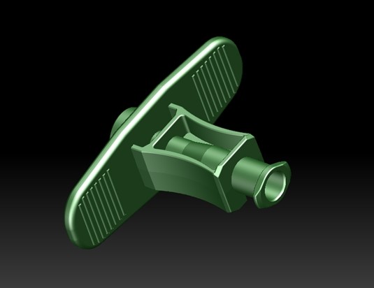この医療装置に使用される射出成形製品は、細穴加工を施した麻酔針の取手部分の部品です。この細穴の中に麻酔針が接着されますが、麻酔針の太さに応じて中の穴径が変化し、穴径が細いものはφ0.021±0.01の管理寸法のものもあります。穴径がとても細く、高い精度が求められるので、コアピンの膨張も考慮したコアピン設計が必要となります。