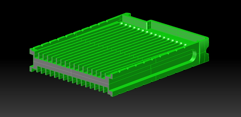医療用プラスチック製品の中でも、この細溝のプラスチック成形品は機能部品になります。溝が細いスリット形状で、特に山の部分の平面度が要求されるプラスチック加工製品です。スリットの幅:0.4ミリ、深さ:5ミリとなっているため、樹脂充填の際にはショートモールドが懸念されます。ショートモールド対策として、材料のグレードもメルトフローレートの高いグレードを選定し、金型設計におけるガス逃げ回路の設置やゲート方式・位置も流動解析を行っています。